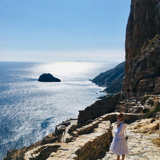 Fondé au 1088 par l'empereur byzantin Alexis 1er Comnène, le monastère, plaqué sur une falaise verticale à 300 m au-dessus de la mer, est une des plus anciennes constructions byzantines des Cyclades. Étincelant de blancheur, le monastère renferme de magnifiques icônes, dont une icône de la Vierge sauvée des iconoclastes par une femme pieuse de Khoziva, une village de Terre Sainte.